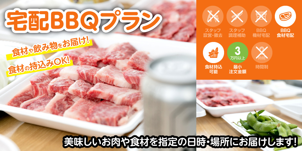 宅配BBQプランは、バーベキューの当日に食材を会場まで宅配するプランです。