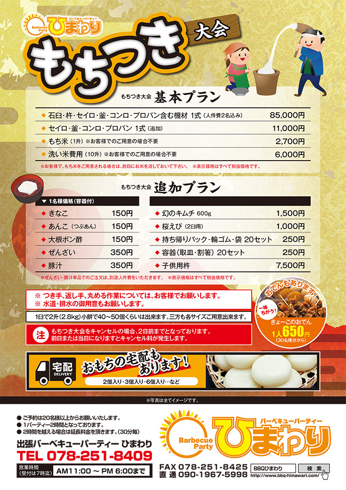 今年ももちつき大会のプランをご用意しております。 おもちの宅配も承っております。