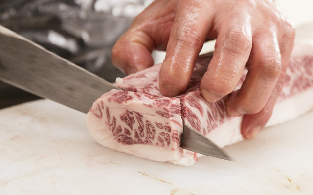 実は一頭の牛から食べられる部分はごくわずか。殆どが脂肪のかたまりであるため脂肪を丁寧に削ぎ落としています。